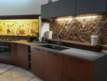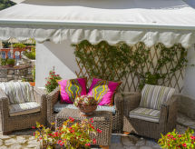 5-huoneen paritalohuoneisto, 160 m2, sisääntulokerroksessa. Osittain peruskorjattu vuonna 2020, mukavasti ja kauniisti sisustettu: olo/ruokailuhuone, TV. Uloskäynti puutarhaan, uima-altaalle. 2 kahden hengen huonetta. 1 huone, 1 x 2 kerrossänky. 1 huone, 1 x 2 kerrossänky. Suuri keittiö (astianpesukone, 5 kaasuhella, leivänpaahdin, vedenkeitin, mikroaaltouuni, pakastin, saarekekeittiö, pitsauuni). Uloskäynti puutarhaan, uima-altaalle. 2 suihkua/bidettä/WC:tä. Kaasulämmitys (lisämaksu). Lämmitys on käytettävissä ainoastaan alkaen 01.11. päättyen 31.03. Puutarha. Terassikalusteita, puutarhagrilli, lepotuoleja. Käytettävissä: pesukone, hiustenkuivaaja. Internet ( Langaton LAN [WLAN] , ilmainen). Pysäköintipaikka n:o 1 (aidattu) talon vieressä. Soveltuu perheille.- Laitteet