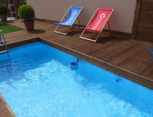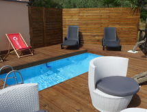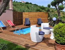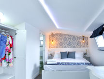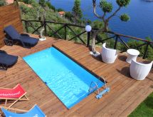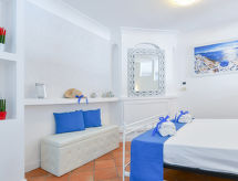 3-huoneen paritalohuoneisto, 80 m2, sisääntulokerroksessa. Vaalea, täysin peruskorjattu vuonna 2021, kauniisti ja hyvällä maulla sisustettu: avoin olo/makuuhuone, 1 vuodesohva kahdelle, ruokapöytä, pienoiskeittiö, satelliitti TV ja kansainvälisiä TV-kanavia (litteänäyttö), ilmastointi ja ilmalämmitys. Uloskäynti terassille. 1 avoin kahden hengen huone. 1 kahden hengen huone, suihku/bidet/WC, ilmastointi ja ilmalämmitys. Uloskäynti puutarhaistumapaikalle, uima-altaalle. Keittiönurkkaus (4 keittolevyä, uuni, mikroaaltouuni, pakastin, kahvinkeitin), ruokapöytä. Suihku/bidet/WC. Ilmastointilaite, ilmalämmitys. Terassi 25 m2, iso puutarhaistumapaikka, nurmikko. Terassikalusteita, parvekekalusteita, puutarhagrilli, lepotuoleja. Ihastuttava panoraamanäkymä merelle, maaseudulle ja paikkakunnalle. Käytettävissä: pesukone, silitysrauta, hiustenkuivaaja. Internet ( Langaton LAN [WLAN] , ilmainen). Pysäköintipaikka (aidattu, 1 auto) talon vieressä. Huomioitavaa: soveltuu perheille yksi kahdenhengenmakuuhuone on huoneiston ulkopuolella. Savuton talo, pysäköintipaikka vain pienelle autolle. Palosammutin. Liinavaatteet, pyyhkeet, loppusiivous ja energiakulut sisältyvät. Ei pakollisia lisäkuluja paikan päällä lukuunottamatta paikallisveroa.- Laitteet