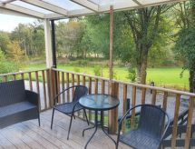 2-huoneen mökki. Avara ja vaalea, mukavasti ja hyvällä maulla sisustettu: olo/ruokailuhuone, ruokapöytä ja TV (litteänäyttö), DVD. Uloskäynti terassille. 1 kahden hengen huone, 1 parisänky. Avoin keittiö (uuni, 4 kaasuhella, leivänpaahdin, vedenkeitin, mikroaaltouuni). Suihku/WC. Lämmitys. Puutarha. Puutarhagrilli. Kaunis näkymä maaseudulle ja joelle. Käytettävissä: syöttötuoli, lastensänky alle 2 vuotiaalle. Internet ( Langaton LAN [WLAN] , ilmainen). Enintään 1 lemmikki/koira sallittu.- Laitteet
