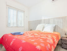 3-huoneen huoneisto, 66 m2, välitasolla. Avara ja vaalea, täysin peruskorjattu, mukavasti ja uudenaikaisesti sisustettu: olo/ruokailuhuone, ruokapöytä, satelliitti TV, ilmastointi ja ilmalämmitys. Uloskäynti terassille, suunta länteen. 1 huone, 1 kapea parisänky (150 cm, pituus 190 cm), ilmastointi ja ilmalämmitys. 1 huone, 1 kapea parisänky (140 cm, pituus 190 cm). Pieni keittiö (astianpesukone, leivänpaahdin, vedenkeitin, mikroaaltouuni, pakastin, kahvinkeitin). Suihku/WC. Iso terassi 19 m2, länteen. Terassikalusteita. Erittäin kaunis näkymä järvelle ja vuorille. Käytettävissä: pesukone, silitysrauta, hiustenkuivaaja. Pysäköintipaikka n:o 12. Huomioitavaa: savuton huoneisto. TV vain FR. Ei hissiä. HUTG050705- Ominaisuudet majoitus