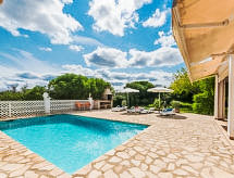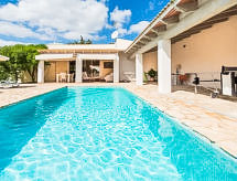 "Santa Eulalia", 3-huoneen talo, 110 m2, alakerta maantasossa. Kohde soveltuu 4 aikuiselle. Vaalea, peruskorjattu, erittäin kauniisti ja hyvällä maulla sisustettu: avoin iso olo/ruokailuhuone, panoraamaikkuna, ruokapöytä, TV, satelliitti TV, litteänäyttö, radio, stereosoitin, sähkölämmitys ja puu-uuni. Uloskäynti puutarhaistumapaikalle, uima-altaalle. 1 iso kahden hengen huone, panoraamaikkuna, 1 kapea parisänky (160 cm, pituus 190 cm), kylpy/suihku/WC, sähkölämmitys, ilmastointi ja ilmalämmitys. 1 iso kahden hengen huone, panoraamaikkuna, 2 vuodetta (100 cm, pituus 200 cm), sähkölämmitys, ilmastointi ja ilmalämmitys. Avoin keittiö (uuni, astianpesukone, 3 keraaminen keittotaso, leivänpaahdin, vedenkeitin, mikroaaltouuni, pakastin, kahvinkeitin). Kylpy/suihku/WC. Sähkölämmitys. Iso terassi, iso puutarha, nurmikko. Terassikalusteita, puutarhagrilli, lepotuoleja, loggia (katos). Näkymä vuorille ja maaseudulle. Käytettävissä: pesukone, silitysrauta, hiustenkuivaaja. Internet ( Langaton LAN [WLAN] , ilmainen). Huomioitavaa: savuton talo.- Ominaisuudet majoitus