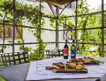 Maatila tuottaa oliiviöljyä ja Chianti DOCG viiniä. Syyskuun lopulla on mahdollista osallistua viinirypäleiden poimimiseen ja marraskuussa oliivien keruuseen. 8 hehtaarin tila viini- ja oliivipuutarhoineen sijaitsee tyypillisellä toscanalaisella maaseudulla, keskellä Firenze/Siena/Arezzo -kolmiota. Omistaja voi erillisestä pyynnöstä järjestää kulttuuriretkiä lähiympäristöön kuljetuksineen (lisämaksu). Bucinessa kaikki palvelut. Spaccio Prada, 3 km. Iso maatila "Le Mura", peruskorjattu, puiden ja peltojen ympäröimänä. 3 km keskustasta Bucine, 25 km keskustasta Arezzo, 35 km keskustasta Siena, rauhallinen sijainti kukkulalla, luonnon keskellä. Yhteiskäytössä: uima-allas (7 x 14 m, syvyys 160 - 160 cm, käytössä kausiluontoisesti: 20.Tou. - 30.Syy.), sisäaskelmat. Ulkosuihku, lasten leikkipaikka (liukumäki, keinu). Lomatalon alueella: ravintola, Langaton LAN [WLAN], aurinkoterassi, keskuslämmitys, pesukone (yhteiskäytössä, lisämaksu), lämmitys maksettava paikalla, lämmitys on käytettävissä ainoastaan alkaen 01.11. päättyen 15.04.. Liinavaatteiden vaihto (ylim. lisämaksu). Huoneiston siivous mahdollinen (lisämaksu). Talousapu mahdollinen (lisämaksu). Ajotie talolta. Pysäköintipaikka talon luona. Ruokakauppa 3 km, supermarket 3 km, ravintola 3 km, rautatieasema "Bucine", kylpylä 20 km. Lähettyvillä nähtävyyksiä: Firenze 55 km, Siena 35 km, Arezzo 30 km. Soveltuu tapahtumille.Interior