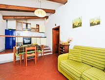 "Simone", 2-huoneen huoneisto, 35 m2, sisääntulokerroksessa. Käytännöllisesti ja viihtyisästi sisustettu: olo/ruokailuhuone, satelliitti TV. Uloskäynti puutarhaan. 1 kahden hengen huone. Keittiönurkkaus (4 keittolevyä, uuni, vedenkeitin, pakastin). Suihku/bidet/WC. Pieni puutarha. Terassikalusteita. Huomioitavaa: 1 lemmikki/koira sallittu. Olohuone eri tasossa (3 askelmaa) keittokomeron kanssa. Kulku makuuhuoneesta kylpyhuoneeseen kolmen askelman kautta.- Laitteet