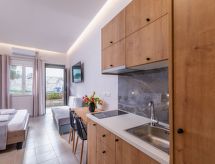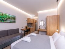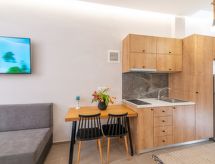"Seasun", 1-huoneen yksiö, 35 m2. Täysin peruskorjattu vuonna 2022, erittäin kauniisti ja uudenaikaisesti sisustettu: avoin olo/makuuhuone, 1 vuodesohva, 1 parisänky ja satelliitti TV (litteänäyttö), ilmastointi. Uloskäynti terassille. Keittiönurkkaus (2 keittolevyä, vedenkeitin, kahvinkeitin, Kapselit kahvinkeittimeen (Nespresso) lisämaksusta, mikroaaltouuni), ruokapöytä. Suihku/WC. Terassi. Terassikalusteita, sähkögrilli (liikuteltava). Näkymä puutarhaan. Käytettävissä: silitysrauta, hiustenkuivaaja. Internet ( Langaton LAN [WLAN] , ilmainen). Huomioitavaa: savuton talo. Savuhälytin, palosammutin. 1039E000214001- Laitteet