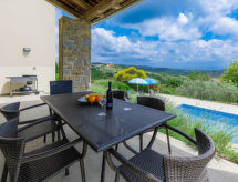 Kaunis huvila "Stuartma", 2 kerroksinen. Alueella Baredine, 4 km keskustasta Buje, rauhallinen, aurinkoinen, korkea sijainti, 17 km meren rannalta. Yksityiskäytössä: tontti 880 m2, kaunis piha/puutarha, uima-allas kulmikas (8 x 4 m, syvyys 100 - 150 cm, käytössä kausiluontoisesti: 15.Huh. - 15.Lok.), sisäaskelmat. Ulkogrilli. Talossa: internetyhteys, pöytäjalkapallo, pesukone. Pysäköintipaikka talon luona tontilla. Kauppa 4 km, ravintola 1 km, pikkukiviranta 17 km. Tennis 16 km, urheilukeskus 16 km, vaellusreittejä talolta 1 km, pyöräilyreitti 1 km. Lähettyvillä nähtävyyksiä: Aquapark 19 km.Interior