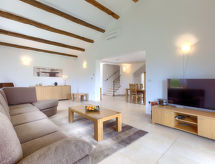 5-huoneen huvila, 200 m2, 2 tasossa. Olo/ruokailuhuone, 70 m2, satelliitti TV (litteänäyttö), DVD ja ilmastointi. Uloskäynti terassille. 1 huone, 1 kapea parisänky (160 cm, pituus 200 cm), suihku/bidet/WC ja ilmastointi. Avoin keittiö (uuni, astianpesukone, 4 keraaminen keittotaso, mikroaaltouuni, pakastin). Erillinen WC. Yläkerrassa: 1 huone, 1 kapea parisänky (160 cm, pituus 200 cm), suihku/bidet/WC ja ilmastointi. 1 huone, 2 vuodetta (80 cm, pituus 200 cm), ilmastointi. Uloskäynti terassille. 1 huone, 2 vuodetta (80 cm, pituus 200 cm), suihku/bidet/WC ja ilmastointi. Suihku/bidet/WC. Terassi 20 m2 osittain katettu, terassi 10 m2. Terassikalusteita, lepotuoleja. Näkymä uima-altaalle ja maaseudulle. Käytettävissä: tallelokero. Internet ( Langaton LAN [WLAN] , ilmainen).- Laitteet