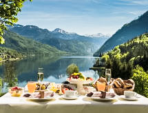 Mukava lomakeskus "MONDI Appartements am Grundlsee". Rauhallinen, aurinkoinen sijainti. Yhteiskäytössä: piha/puutarha luonnontilassa, oleskelualue nurmikolla, uima-allas (sisällä) (12 x 5 m, käytössä kausiluontoisesti: 01.Tam. - 31.Jou.), sisäaskelmat. Lomatalon alueella: vastaanotto, ravintola, Langaton LAN [WLAN], sauna, hieronta (lisämaksu). Höyrykylpy, infrapunasauna, rentoutumistila, aurinkoterassi, keskuslämmitys, polkupyörien vuokrausta. Saatavana: soutu (lisämaksu). Aamiainen mahdollinen pyydettäessä (lisämaksu). Pysäköintipaikka (katettu, rajoitettu määrä, lisämaksu) talon luona. Keskuspysäköintialueet. … minuutin kävelymatka keskustaan 8, kylpylä 6 km, uimaranta 100 m. Golfkenttä 5 km, tennis, ratsastustalli, hiihtohissi 700 m, suksivuokraus 6 km, murtomaalatu 6 km. Lähettyvillä nähtävyyksiä: Tressensteinwarte 4 km, Salzbergwerk Altaussee 11 km, UNESCO Welterbe Hallstatt 28 km, Dachstein Rieseneishöhle Obertraun 34 km. Tunnettu hiihtoalue: Loser 11 km, Dachstein - Krippenstein 19 km, Tauplitz 15 km. Tunnettu järvi: Toplitzsee, Altausseer See 8 km. Vaellusreittejä Tressenstein 4 km, Zimitzalm 5 km. Huomioitavaa: autovapaa loma-alue. Onkiminen mahdollista [lupa tarvitaan].Interior