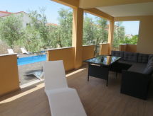 Yhden perheen talo "Tina". Alueella Meterize, 1 km keskustasta Biograd na Moru, 27 km keskustasta Zadar, 1.6 km meren rannalta, 1.6 km rannalta. Yksityiskäytössä: tontti 410 m2 (aidattu), piha/puutarha, uima-allas kulmikas (6 x 3 m, syvyys 150, käytössä kausiluontoisesti: 27.Tou. - 01.Lok.), sisäaskelmat. Ulkosuihku, lehtimaja, terassi, ulkogrilli. Talossa: internetyhteys, pesukone. Pysäköintipaikka (2 autolle) talon luona tontilla. Supermarket 450 m, ravintola 2 km, pikkukiviranta 1.6 km.Interior