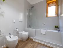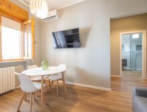 "Trilocale", 3-huoneen huoneisto, 70 m2, korotetussa sisääntulokerroksessa. Vaalea, viihtyisästi sisustettu: avoin olo/ruokailuhuone, 1 vuodesohva kahdelle ja TV (litteänäyttö). 1 kahden hengen huone, suihku/bidet/WC. 1 kahden hengen huone. Pieni keittiönurkkaus (4 keittolevyä, uuni, mikroaaltouuni, pakastin). Kylpy/bidet/WC. Lämmitys, ilmastointilaite. Käytettävissä: pesukone, kuivausrumpu, lastensänky, hiustenkuivaaja. Internet ( Langaton LAN [WLAN] , ilmainen). Huomioitavaa: ei pysäköintipaikkaa. Ei hissiä. LE07505291000013904- Ominaisuudet majoitus