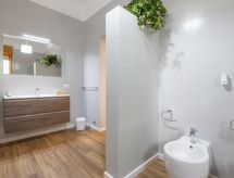Nardò: Kodikas, yksinkertainen huvila "Valeria", 2 kerroksinen. Lomatalossa 3 huoneistoa. 1.5 km keskustasta, 7 km meren rannalta, 7 km rannalta. Yhteiskäytössä: piha/puutarha 500 m2, uima-allas (8 x 6 m, syvyys 120 - 20 cm, käytössä kausiluontoisesti: 01.Huh. - 31.Lok.). Ulkosuihku, ulkokalusteita. Liinavaatteiden vaihto (ylim. lisämaksu). Pyyhkeiden vaihto (ylim. lisämaksu). Huoneiston siivous mahdollinen (lisämaksu). Yleinen pysäköinti kadulla lisämaksu. Kauppa 1.5 km, ruokakauppa 1 km, supermarket 1 km, ravintola, baari 800 m, hiekkaranta "Santa Maria al Bagno" 8 km, kallioranta "Porto Selvaggio" 7 km. Lähettyvillä nähtävyyksiä: Lecce 30 km, Gallipoli 18 km, Porto Cesareo 18 km, Galatina 18 km, Brindisi airport (BDS) 75 km. Huomioitavaa: auto tarpeellinen, ei hissiä. Soveltuu perheille, vauvan tarvikkeita pyynnöstä.Interior