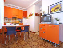 3-huoneen huoneisto, 40 m2. Käytännöllisesti sisustettu: olo/ruokailuhuone, ruokapöytä ja satelliitti TV. 1 kahden hengen huone. 1 huone, 1 x 2 kerrossänky. Keittiönurkkaus (4 kaasuhella, mikroaaltouuni, pakastin, kahvinkeitin). Suihku/WC. Ilmastointilaite, ilmalämmitys. Puutarhaistumapaikka katettu. Terassikalusteita. Käytettävissä: tallelokero, syöttötuoli, lastensänky alle 2 vuotiaalle (lisämaksu). Pysäköintipaikka (1 auto). Enintään 1 pieni lemmikki/koira sallittu.- Laitteet