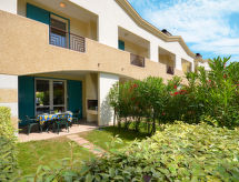 2-huoneen rivitalo, 50 m2, 2 tasossa. Käytännöllisesti ja kauniisti sisustettu: olo/makuuhuone, 1 vuodesohva kahdelle, ruokapöytä, pienoiskeittiö ja satelliitti TV. Uloskäynti terassille. Avoin keittiö (Kaasuhella, 4 kaasuhella, mikroaaltouuni, pakastin, kahvinkeitin). Yläkerrassa: 1 huone, 1 vuode ja 1 parisänky. Suihku/bidet/WC. Ilmastointilaite, ilmalämmitys. Lämmitys ei ole käytettävissä kaikissa huoneissa. Parveke, terassi katettu, pieni puutarha. Terassikalusteita, puutarhagrilli. Käytettävissä: tallelokero, syöttötuoli, lastensänky. Pysäköintipaikka (1 auto) talon vieressä. Ei pakollisia lisäkuluja paikan päällä lukuunottamatta paikallisveroa. Liinavaatteet, pyyhkeet, loppusiivous ja energiakulut sisältyvät.- Laitteet