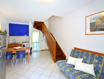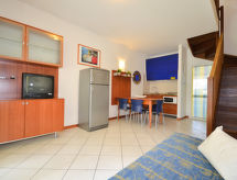 Iso, lapsiystävällinen lomakeskus "Villaggio Marco Polo". Residenssissä 100 taloa. Alueella Bibione-Spiaggia, 800 m keskustasta Bibione, 13 km keskustasta Lignano, 100 km keskustasta Venezia, 650 m meren rannalta. Yhteiskäytössä: tontti 3 ha (aidattu), hoidettu piha/puutarha jossa nurmikkoa ja puita, 2 uima-altaita (25 x 12 m, 100 m2, käytössä kausiluontoisesti: 01.Tou. - 30.Syy.). Lastenallas, ulkosuihku, rantalentopallo, lasten leikkipaikka. Lomatalon alueella: baari, Langaton LAN [WLAN], pesukone, kuivausrumpu (yhteiskäytössä, lisämaksu), polkupyörien vuokrausta. Pysäköintipaikka talon luona tontilla, yhteinen autotalli. Ruokakauppa 800 m, rautatieasema "Latisana (Milano-Venezia-Triest)" 21 km, hiekkaranta 650 m, kylpylä "Bibione Thermae" 650 m. Golfkenttä (18 reikää) 9 km. Huomioitavaa: lastenhoito lomakaudella (sis.). Omistaja ei hyväksy ryhmiä.Interior