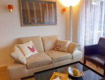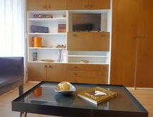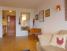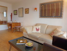 1-huoneen huoneisto, 28 m2, 2. kerroksessa. Olo/ruokailuhuone, 1 komerosänky kahdelle (2 x 90 cm, pituus 190 cm), kaapeli TV (litteänäyttö), radio ja DVD. Keittiönurkkaus sisäänkäynnin yhteydessä (3 keittolevyä, uuni, leivänpaahdin, vedenkeitin, kahvinkeitin, Kapselit kahvinkeittimeen (Nespresso) lisämaksusta, fonduesetti (liha)). Suihku/WC. Parveke, etelään. Käytettävissä: hiustenkuivaaja. Internet ( Langaton LAN [WLAN] , ilmainen). Huomioitavaa: savuton huoneisto. Nespresso-kahvinkeitin.- Laitteet