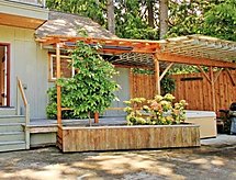 Maison 4 pièces pour 8 personnes, 90 m2 sur 2 niveaux, confortable aménagement. Séjour/salle à manger avec DVD, poêle suédois et table pour les repas. Non permis de fumer. 1 lit gigogne. Chambre à coucher avec 1 lit double. Chambre à coucher avec 1 lit double. Chambre à coucher avec 1 lit double. Cuisine ouverte avec four à 4 plaques, four micro-ondes, four, lave-vaisselle et réfrigérateur. Salle de bains, douche, douche/WC et WC séparés. Balcon, jardinet. Autres fournitures: téléphone, lave-linge, sèche-linge.- Caractéristiques de l'hébergement