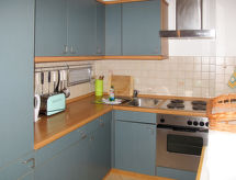 "Achterwasser (ZEM100)", apt 2 pièces 60 m2, au rez-de-chaussée. Clair, aménagement fonctionnel et plaisant: séjour/chambre à coucher avec 1 divan-lit double, table pour les repas, TV (satellite), radio et lecteur CD. Sortie sur la terrasse. 1 chambre double. Cuisine ouverte (4 plaques de cuisson, four, grille-pain, bouilloire électrique, four micro-ondes, cafetière électrique). Douche/WC. Chauffage au gaz. Moquette. Terrasse 12 m2. Meubles de terrasse, réduit. A disposition: chaise haute pour enfant, lit bébé. Internet (Connexion WIFI, gratuit). Veuillez noter: logement non-fumeur. 1 animal/ chien autorisé. Détecteur de fumée.- Installations