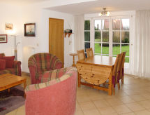 Complexe de vacances "Achterwasser". 7 maisons dans la résidence. 28 appartements dans la résidence. À 300 m du centre de Zempin, en bordure de la localité, à 3 km du centre de Zinnowitz, à 13 km du centre de Wolgast, à 1.5 km de la mer, à 300 m de la lagune. Place de parking sur le terrain. Supermarché 800 m, plage de sable 1.5 km, piscine couverte 4 km. Toutes les maisons/appartements sont aménagés individuellement. Les appartements sont répartis sur huit maisons mitoyennes de quatre appartements chacune. Les pelouses de l'établissement sont des terrains de jeux, les chiens n'y sont pas autorisés.Interior
