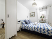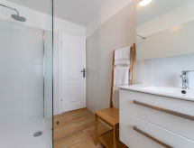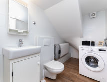 Maison mitoyenne 3 pièces 80 m2 sur 3 niveaux. Séjour/salle à manger avec TV (satellite) (écran plat), air-conditionné. Sortie sur la terrasse. Cuisine ouverte (four, lave-vaisselle, 4 plaques vitrocéramiques, congélateur, cafetière électrique). À l'étage inférieur: WC séparé. À l'étage supérieur: 1 chambre avec 1 grand-lit (150 cm, longueur 200 cm), TV (satellite) (écran plat). Douche/WC. Sous le toit: 1 chambre, mansardée hauteur plafond 100 - 194 cm avec 1 divan-lit (80 cm, longueur 200 cm), 1 grand-lit (160 cm, longueur 200 cm), air-conditionné. Terrasse 15 m2, couverte. Meubles de terrasse, barbecue (portable), réduit. A disposition: coffre-fort, sèche-cheveux. Internet (Connexion WIFI, gratuit). Fenêtres basses dans la chambre mansardée.- Installations