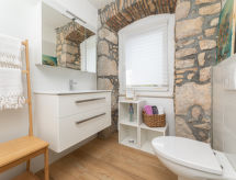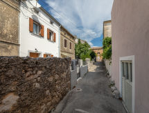 Maison mitoyenne "Adria", de 3 étages. À 150 m du centre d'Omišalj, à 1 km de la mer, à 1 km de la plage. A usage privé: terrain 350 m2. Terrasse (15 m2), meubles de jardin. Infrastructures de la Maison: accès internet, lave-linge. Place de parking (pour 2 voitures) près de la maison sur le terrain. Magasins, restaurant 150 m, plage de graviers 1 km, plage bétonnée 1 km. Veuillez noter: Aéroport 4 km de la maison.Interior
