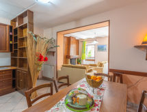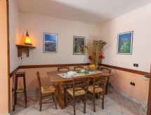 "Casa Maja", maison jumelée 5 pièces 115 m2 sur 2 niveaux. Aménagement fonctionnel et rustique: séjour avec cheminée et TV. Sortie sur la terrasse. Salle à manger avec table pour les repas. Cuisine ouverte (4 plaques de cuisson, four, congélateur). Douche/WC. Chauffage au fuel. À l'étage supérieur: (escalier en colimaçon) 2 chambres, chaque chambre avec: 1 lit double. Sortie sur le balcon. 1 chambre avec 2 x 2 lits superposés (80 cm). Douche/WC. Balcon, terrasse, jardinet. Meubles de terrasse, mobilier de balcon, barbecue, chaises longues (4). Vue panoramique. A disposition: chaise haute pour enfant, lit bébé. Veuillez noter: maximum 2 animaux/ chiens autorisés. Entrée privée. CIR 069075CVP0001- Installations