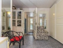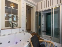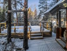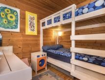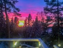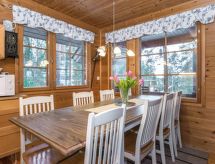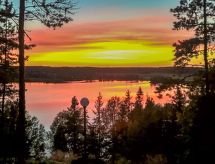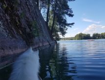 A 35 km au nord-est de Porvoo, lac Kirkkojärvi (longueur 5,5 km, largeur 0,5 km), plage de sable et rochers sur la parcelle, terrasse et jetée au bord du lac, canot à rames. Cabane en rondins 2011, séjour/cuisine, chambre (6,5 m²) avec lit superposé, canapé avec lit pour 2 places dans le salon cheminée, bain hydromassant et cabine de douche avec sauna vapeur dans la salle d'eau. Sauna avec poêle à bois, WC séparé et salle d'eau dans l'espace de passage avec douche et WC. Lobby, terrasse intérieure froide et salle de la tour. Entrée de la salle de la tour depuis la terrasse intérieure froide. Il y a un lit d'été dans la chambre de la tour. Deux pompes à chaleur aérothermiques. A l'étage (18 m²) lit double et deux lits simples. De l'autre côté de la maison se trouve le deuxième étage (11 m²) avec un lit double. Il y a de grandes terrasses avec de superbes vues sur la cour. Site de grillades et terrain de badminton. Une bonne passerelle mène à la plage (120 m). Sur la plage, il y a aussi une terrasse au bord du lac, une jetée et un grill. La plage est également accessible en voiture. Ahvenkallio est une villa exclusive avec une vue fantastique. Destination géniale pour un plus grand groupe de personnes. Convient bien pour passer des vacances et des célébrations. Convient même pour deux familles. Dans la cour se trouve un trampoline de 4,2 m sans filet de sécurité. Myrskylä 3 km, Orimattila 21 km, Porvoo 35 km, Helsinki 88 km. Le lac a de belles plages rocheuses et beaucoup de sandres. Terrain de jeu plat et herbeux sur la parcelle. Toutes les terrasses de cette villa sont éclairées, il y a plus de 70 lumières extérieures sur le terrain. Dans le jardin pousse (vous pouvez manger pendant vos vacances): Pommes, cerises, prunes, variété de baies de vin, groseilles, myrtilles, nerprun et framboises. Myrtilles, airelles et champignons dans la forêt. Deux kayaks peuvent être loués auprès du propriétaire. Sièges et dossiers rembourrés. Les kayaks sont sécuritaires. Presque impossible d'obtenir ces tours. 25€ journée/kayak, 120€ /semaine/kayak. Possibilité de faire de l'équitation si convenu séparément. Ecurie avec cinq chevaux et poney à 3 km. Equitation en plomb pour les débutants aussi. Hautes terres et grottes de Suntinlahti à 800 m. Golf Frisbee de l'autre côté du lac : 800 m. Salle de danse de Kiparkatti et centre de ski à 3 km. En hiver (lorsque la neige / les conditions météorologiques le permettent), il y a une piste de ski et généralement une piste de patinage de 5 km, sur le lac à 120 m. Également d'autres pistes de ski à proximité (1 km). Possibilité de ski de fond en hiver (lorsque les conditions météorologiques le permettent) : location de ski + école de ski GRATUITE.- Installations