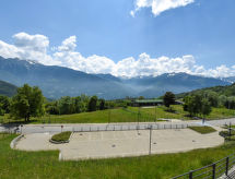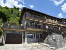 Apt 4 pièces 70 m2 sur 2 niveaux au 1er étage, situation sud. Clair, aménagement confortable et moderne: séjour/salle à manger avec cheminée (uniquement à titre de décoration), table pour les repas et TV (écran plat). Sortie sur le balcon, sur la terrasse. Petite coin cuisine (four, lave-vaisselle, 4 feux, grille-pain, bouilloire électrique, four micro-ondes, congélateur). À l'étage supérieur: 1 chambre avec 1 lit. Sortie sur le balcon. 1 chambre avec 1 x 2 lits superposés. Sortie sur le balcon. 1 chambre double. Sortie sur le balcon. Douche/bidet/WC. 3 balcons, terrasse 30 m2. Meubles de terrasse, barbecue, chaises longues (3). Belle vue panoramique sur les montagnes et la vallée. A disposition: lave-linge, lit bébé, sèche-cheveux. Internet (Connexion WIFI, gratuit). Veuillez noter: adapté(e) aux familles. Entrée privée. Pas de frais supplémentaires obligatoires à régler sur place.- Installations