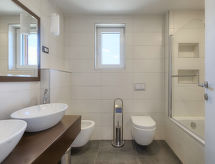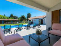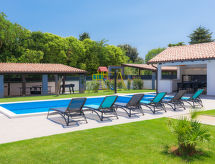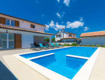 Šišan à 4 km de Medulin: Belle villa "Alba", de 2 étages, année de construction 2019. À 900 m du centre de Šišan, à 8 km du centre de Pula, situation tranquille, ensoleillée, à 2 km de la mer, à 2 km de la plage. A usage privé: terrain 2'000 m2 (clôturé), beau jardin avec pelouse et plantes, 2 piscines rectangulaire (10 x 5 m, profondeur 140 cm, disponibilité saisonnière: 04.Avr. - 24.Oct.) avec marches intérieures. WC dans l'espace piscine, douche extérieure, pool house avec douche, ping-pong, meubles de jardin, barbecue, espace de jeux pour les enfants (toboggan, balançoire). Infrastructures de la Maison: accès internet, bain à remous , sauna à infra-rouge, baby foot, trampoline, lave-linge. Accès en voiture jusqu'à la maison (300 m chemin non goudronné). Place de parking (pour 4 voitures, couvert) près de la maison sur le terrain. Magasins 800 m, supermarché 6 km, restaurant 650 m, plage de graviers 2 km, plage de rochers 2 km. Ecole de surf 4 km, ecole de voile 4 km, tennis 6 km, centre équestre 1 km, chemins de randonnées pédestres depuis la maison 100 m, piste cyclable 150 m. L'unité comprend 2 maisons louées ensemble. Piscine hydromassage.Interior