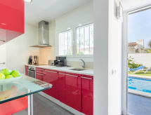 Belle maison moderne, accueillante "Alberes", de 2 étages. Dans le quartier d'Alberes, à 1.5 km du centre d'Empuriabrava, situation tranquille, ensoleillée quartier résidentiel, zone avec peu de trafic, à 1.5 km de la mer, à 1.4 km de la plage, à 270 m du canal, à 550 m de la rivière. A usage privé: terrain 400 m2 (clôturé) avec pelouse, piscine (8 x 4 m, disponibilité saisonnière: 01.Jun. - 30.Sep.). Douche extérieure, pergola, meubles de jardin, barbecue. Infrastructures de la Maison: Connexion WIFI, lave-linge. Place de parking (pour 2 voitures) sur le terrain. Magasins 300 m, supermarché, restaurant, bar 400 m, boulangerie 200 m, arrêt du bus 2.8 km, plage de sable "Empuriabrava" 1.5 km. Port plaisance 2 km, terrain de golf 5 km, golf miniature 900 m, centre équestre 3 km, piste cyclable 550 m. Attractions à proximité: Aerodromo y túnel del viento 2 km, Parque Acuático Roses 6 km, Museo Dalí Figueres 15 km, Castillo de Perelada 12 km, Ruïnas de St. Martí d'Empuries 21 km, Monasterio de Sant Pere de Rodes 23 km.Interior