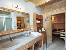 "Luxury Lodge", chalet 4 pièces 95 m2. Logement idéal pour 6 adultes + 2 enfants. Aménagement de bon goût et avec beaucoup de bois: entrée. Séjour/salle à manger avec table pour les repas et TV (satellite) (écran plat), radio. Cuisine ouverte (4 plaques de cuisson, lave-vaisselle, cafetière électrique, combiné micro-ondes). Douche, WC séparé, Sauna. À l'étage supérieur: 1 chambre double. 2 chambres doubles, chaque chambre avec: 1 divan-lit. Douche/WC. Petit balcon, petite terrasse. Meubles de terrasse, réduit. Très belle vue sur les montagnes et les pistes de ski. A disposition: sauna, coffre-fort, sèche-cheveux. Internet (Connexion WIFI, gratuit). Veuillez noter: 1 animal/ chien autorisé. Détecteur de fumée.- Installations