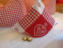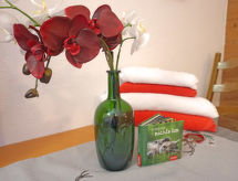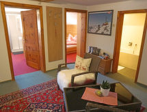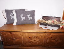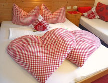 Apt 3 pièces 70 m2 au 2ème étage. Mansardé, aménagement avec beaucoup de bois: entrée. 1 chambre double avec lavabo et douche. 1 chambre double avec lavabo. Cuisine/séjour (4 plaques de cuisson, four, lave-vaisselle, grille-pain, bouilloire électrique, cafetière électrique) avec table pour les repas et TV (satellite). Salle de bains, WC séparé. A disposition: Internet (Connexion WIFI, gratuit). Veuillez noter: logement non-fumeur. Détecteur de fumée. La hauteur de la porte et de la pièce est partiellement basse.- Caractéristiques de l'hébergement