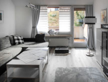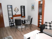 "Am Kurpark", apt 2 pièces 56 m2 au 2ème étage. Rénové en 2022, aménagement moderne: séjour/chambre à coucher avec 1 divan-lit double (200 cm, longueur 200 cm), table pour les repas, TV (satellite), écran plat et radio. Sortie sur le balcon. 1 chambre avec 1 lit double (180 cm, longueur 200 cm). Cuisine (four, lave-vaisselle, 4 plaques vitrocéramiques, congélateur, cafetière électrique) avec table pour les repas. Bain/WC. Chauffage au gaz. Balcon, situation sud. Mobilier de balcon, chaises longues (1). A disposition: Internet (Connexion WIFI, gratuit). Veuillez noter: logement non-fumeur. Détecteur de fumée, extincteur.- Installations