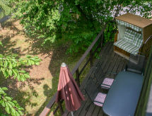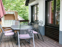 "Am Sternberg 56", maison 4 pièces 75 m2 sur 2 niveaux, au rez-de-chaussée. Aménagement moderne et avec beaucoup de bois: séjour/salle à manger 25 m2 avec TV (câblée) (écran plat), chaîne stéréo et poêle à bois. Sortie sur la terrasse, sur le jardinet. 1 chambre 12 m2 avec 1 lit double (180 cm, longueur 200 cm), lavabo et WC séparés. Cuisine ouverte 8 m2 (four, lave-vaisselle, 4 plaques vitrocéramiques, four micro-ondes, cafetière électrique). Douche/WC. À l'étage supérieur: (escalier en colimaçon) 1 chambre 12 m2, mansardée avec 1 lit double (180 cm, longueur 200 cm). Sortie sur le balcon. 1 chambre 11 m2, mansardée avec 2 lits (90 cm, longueur 200 cm). Sortie sur le balcon. Chauffage électrique. Petit balcon 5 m2, situation sud, grande terrasse 30 m2 partiellement couverte, jardinet, pelouse 100 m2. Meubles de terrasse, mobilier de balcon. A disposition: lave-linge, chaise haute pour enfant, bois (en sus). Internet (Connexion WIFI, gratuit). Veuillez noter: maximum 2 animaux/ chiens autorisés. Détecteur de fumée, extincteur. La maison est chauffée grâce à une pompe à chaleur économique. Au rez-de-chaussée, les chambres sont reliées par des escaliers (mezzanine). Il est autorisé de fumer.- Installations
