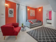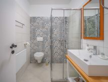 Kastav à 7 km de Opatija: Maison jumelée "Amberg", de 2 étages. Situation tranquille, surélevée, au cœur de la ville, à 5.5 km de la mer. A usage privé: terrain 234 m2 (clôturé), piscine (hors sol) chauffée (2 x 2 m, disponibilité saisonnière: 18.Avr. - 06.Nov.). Douche extérieure, meubles de jardin. Infrastructures de la Maison: accès internet, lave-linge, sèche-linge. Accès en voiture jusqu'à 40 m de la maison. Parking public 40 m. Magasins, restaurant 100 m, plage de graviers 5.5 km, plage bétonnée 5.5 km. Chemins de randonnées pédestres depuis la maison 100 m, piste cyclable 150 m. Groupes de jeunes sur demande seulement. La piscine à usage privatif est un bain à remous pour 6 personnes. Pour les groupes de jeunes, une double caution est demandée à l'arrivée. Disponible : orbite.Interior