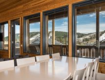 9 km au nord-est de Jämsä, lac Kuikkajärvi à 100 m, pas de plage privée. Appartement dans une maison jumelée en bois, construite en 2009, située dans le centre de ski Himos. En bas: chambre avec 3 lits simples, WC, sauna, douche et coin salon avec canapé et fauteuil. A l'étage: 2 chambres avec 2 lits chacune, grand séjour avec salle à manger pour 10 personnes, canapé et fauteuils, cheminée, cuisine. WC séparé avec douche. Grande terrasse couverte à l'avant, vue sur les pistes de l'Himos. Table et chaises de jardin sur la terrasse. Stockage / bûcher à usage commun avec l'Ameno 2 -appartement, l'entrée du stockage est à côté de la porte d'entrée de l'Ameno 2 -appartement. Les terrasses avant des appartements Ameno 2 et Ameno 3 peuvent être jointes à une grande terrasse. Les clés des deux appartements seront nécessaires pour ouvrir la cloison. L'appartement Ameno 3 est situé au centre de West-Himos (Himos Occidental). Bonne vue sur les pentes d'Himos. Playstation 2 -console et connexion Wlan-Internet sans fil dans l'appartement. Aire de jeux pour enfants Kuikkajärvi 150 m, pistes de ski West-Himos 650 m, Mono Pub Pizzeria 400 m, Himos Areena 500 m, Jämsä 8,5 km.- Installations