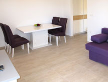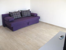 "TGR148", apt 3 pièces 68 m2 au 1er étage. Séjour/salle à manger avec 1 divan-lit et TV (satellite) (écran plat), air-conditionné. Sortie sur le balcon. 1 chambre avec 1 grand-lit (180 cm). 1 chambre avec 2 lits. Cuisine ouverte (four, lave-vaisselle, 2 plaques vitrocéramiques, grille-pain, bouilloire électrique, four micro-ondes, congélateur, cafetière électrique). Douche/WC. Balcon. Mobilier de balcon. A disposition: lave-linge. Internet (Connexion WIFI, gratuit). Veuillez noter: logement non-fumeur. Maximum 1 animal/ chien autorisé.- Installations