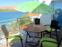 Immeuble "Andriana". À 2.5 km du centre de Grebaštica, à 10 km du centre de Primošten, à 20 km du centre de Šibenik, à 10 m de la mer, à 10 m de la plage, dans une impasse. En commun: terrain 600 m2 avec arbres. Terrasse, barbecue. Infrastructures de la Maison: accès internet. Place de parking sur le terrain. Magasins 2.5 km, supermarché 10 km, restaurant 10 km, plage bétonnée 10 m. Veuillez noter: Aéroport 45 km de la maison.Interior