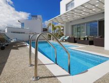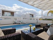 Villa, luxueuse "sunday". Infrastructures de la maison: air-conditionné, lave-linge (à usage privé). Accès et parking: parking réservé. Accès en voiture pendant toute l'année. Position: au centre d'Ayia Napa, dans la verdure. Alentours de la maison: terrain (à usage privé), piscine (à usage privé, longueur 8 m x largeur 4 m). Infrastructure et distances: supermarché 700 m, plage de sable 2 km.Interior