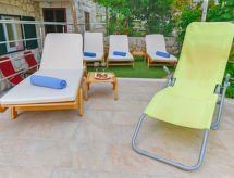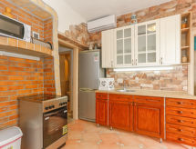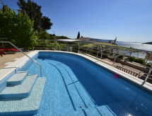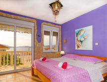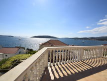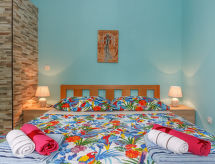 Maison 5 pièces 190 m2 sur 2 niveaux, situation sud. 1 chambre avec 1 lit double (2 x 80 cm, longueur 200 cm). 1 chambre avec 1 grand-lit (160 cm, longueur 200 cm), air-conditionné. Salle à manger avec TV (satellite) (écran plat), air-conditionné. Sortie sur la terrasse. Cuisine ouverte (four, 4 plaques vitrocéramiques, four micro-ondes, congélateur). Douche/WC. À l'étage supérieur: séjour/salle à manger 20 m2 avec TV (satellite) (écran plat), air-conditionné. Sortie sur la terrasse. 1 chambre avec 1 grand-lit (180 cm, longueur 200 cm), table pour les repas, coin-cuisine, douche/WC et air-conditionné. Sortie sur la terrasse. 1 chambre avec 1 grand-lit (180 cm, longueur 200 cm), douche/WC et air-conditionné. Cuisine ouverte (4 plaques vitrocéramiques, congélateur). Douche/WC. Terrasse 15 m2, couverte, terrasse 30 m2, couverte. Meubles de terrasse, chaises longues. Belle vue sur la mer. A disposition: lave-linge, sèche-cheveux. Internet (Connexion WIFI, gratuit). 1 animal/ chien autorisé. Appartement situé au rez-de-chaussée : salle à manger, cuisine ouverte, 2 chambres. Appartement situé au premier étage : salon / salle à manger, cuisine ouverte et 2 chambres à coucher.- Installations