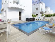 Villa, confortable "atlantia". Infrastructures de la maison: air-conditionné, lave-linge (à usage privé). Accès et parking: parking réservé. Accès en voiture pendant toute l'année. Position: au centre d'Ayia Napa. Alentours de la maison: terrain (à usage privé), piscine (à usage privé, longueur 7 m x largeur 3 m), douche extérieure (à usage privé). Infrastructure et distances: supermarché 300 m, restaurant 400 m, plage de sable 500 m.Interior