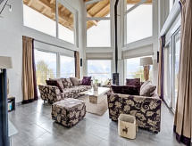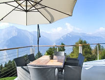 "Antoinette", maison 6 pièces 200 m2 sur 3 niveaux. Aménagement moderne et luxueux: grand séjour/salle à manger avec baie vitrée avec poêle suédois, TV (câblée), DVD et volet roulant électrique. Sortie sur le balcon, sur la terrasse, orientée ouest et orientée nord. Salon. 1 chambre avec 2 lits (90 cm, longueur 190 cm). Grande cuisine ouverte (four, lave-vaisselle, 4 plaques vitrocéramiques, four micro-ondes, congélateur, four à vapeur) avec bar. Douche/WC. Chauffage. À l'étage inférieur: salon avec TV (câblée) et écran plat. À l'étage supérieur: 1 grande chambre avec 1 lit double (2 x 80 cm, longueur 200 cm), douche/WC. Sortie sur le balcon, orientée sud. 1 grande chambre avec 1 grand-lit (160 cm, longueur 200 cm), bain/WC. Sortie sur le balcon, orientée sud. 1 chambre avec 2 lits (90 cm, longueur 190 cm), douche/WC. Petite terrasse, situation est. Meubles de terrasse, mobilier de balcon, barbecue. Vue panoramique sur les montagnes et la vallée. A disposition: lave-linge, sèche-linge, sauna, chaise haute pour enfant, lit bébé, sèche-cheveux. Internet (Connexion WIFI, gratuit). Place de parking (2 Voitures). Veuillez noter: logement non-fumeur.- Caractéristiques de l'hébergement