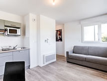 "St Malo cosy" studio 24 m2 au 1er étage. Clair, aménagement agréable et moderne: salon avec 1 divan-lit double (1 x 160 cm, longueur 190 cm), TV (écran plat), volet roulant électrique. Coin cuisine (2 plaques vitrocéramiques, four micro-ondes, congélateur). Douche/WC. Chauffage électrique. A disposition: lave-linge. Place de parking No 15 (couvert). Veuillez noter: logement côté parking. Logement non-fumeur. Détecteur de fumée. 35288000510C9- Installations