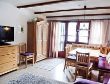Résidence "Aragon". En bordure de la localité, à 500 m du centre d'Ernen, situation tranquille, ensoleillée, à 5 km des pistes de ski. En commun: ping-pong, barbecue, four / barbecue en dur, espace de jeux pour les enfants. Infrastructures de la Maison: ping-pong, chauffage central, lave-linge, sèche-linge (en commun). Accès en voiture jusqu'à le terrain. Garage en commun. Magasins 500 m, arrêt du bus 100 m. Terrain de golf (18 trous) 25 km, tennis 2 km, tennis couvert 2 km, centre sportif 2 km, télécabine 2 km. Veuillez noter: ski-bus gratuit. D’autres appartements sont également proposés à la location dans cette maison de vacances. Le nouveau pont suspendu relie les deux domaines de randonnée d‘Ernen et Bellwald et donne accès à la piste cyclable nationale nr. 1 (route du Rhône du lac glaciaire au lac Léman). Entre Ernen et Mühlebach, le pont donne un accès direct au train de Matterhorn Gotthard.Interior