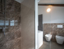 Maison 8 pièces 200 m2 sur 2 niveaux. Aménagement confortable et agréable: séjour/salle à manger avec TV (câblée) et air-conditionné. Sortie sur la terrasse. 1 chambre avec 1 grand-lit (160 cm, longueur 200 cm). 1 chambre avec 2 lits (90 cm, longueur 200 cm). Studio avec 1 lit (90 cm, longueur 200 cm), 1 lit gigogne (longueur 200 cm), douche/WC, TV et air-conditionné. Sortie sur le jardinet. Cuisine ouverte (four, lave-vaisselle, 4 plaques vitrocéramiques, bouilloire électrique, four micro-ondes, congélateur, cafetière électrique) avec air-conditionné. Douche/bidet/WC. À l'étage supérieur: (escalier extérieur) séjour/salle à manger avec bain à remous , TV (câblée) et air-conditionné. Sortie sur la terrasse. 2 chambres, chaque chambre avec: 1 grand-lit (160 cm, longueur 200 cm). 1 chambre avec 2 lits (90 cm, longueur 200 cm). Cuisine ouverte (four, lave-vaisselle, 4 plaques vitrocéramiques, bouilloire électrique, four micro-ondes, congélateur, cafetière électrique) avec air-conditionné. Sortie sur le balcon. Douche/bidet/WC. Chauffage. Possibilité de chauffage uniquement du 01.10. au 01.05. Balcon 6 m2, terrasse 12 m2 partiellement couverte terrasse 12 m2, couverte, jardinet 20 m2. Meubles de terrasse, mobilier de balcon, barbecue (portable), chaises longues. A disposition: coffre-fort, moustiquaire, chaise haute pour enfant, lit bébé, sèche-cheveux. Internet (Connexion WIFI, gratuit).- Installations