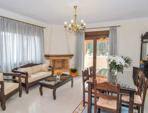 "Artemidon", apt 3 pièces 76 m2. Aménagement confortable et agréable: séjour ouvert avec cheminée et TV (satellite) (écran plat), lecteur CD et DVD. Sortie sur la terrasse. 1 chambre avec 1 lit double. Sortie sur le balcon. 1 chambre double avec 2 lits. Sortie sur le balcon. Cuisine ouverte (four, 4 plaques vitrocéramiques, cafetière électrique) avec table pour les repas. Bain/WC, balnéo. Air-conditionné. Balcon terrasse partiellement couverte. Belle vue sur la mer. A disposition: lave-linge, coffre-fort, fer à repasser, sèche-cheveux. Internet (Connexion WIFI, gratuit). Veuillez noter: maison non-fumeur. 0311Κ10300270301- Caractéristiques de l'hébergement