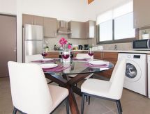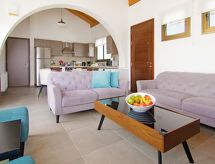 Belle villa, moderne "marion". Infrastructures de la maison: air-conditionné, lave-linge (à usage privé). Accès et parking: parking réservé. Accès en voiture pendant toute l'année. Position: au centre d'Ayia Thekla, en bordure de la localité d'Ayia Napa. Alentours de la maison: terrain (à usage privé), piscine (à usage privé, longueur 8 m x largeur 4 m), douche extérieure (à usage privé). Infrastructure et distances: supermarché 2.6 km, restaurant 2.6 km, crique pour baignade 500 m, plage de sable 2.9 km, plage de rochers 500 m.Interior