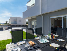 Belle villa moderne "Athos", de 2 étages, année de construction 2020. Dans le hameau de Karigador, à 4 km du centre de Novigrad, situation tranquille, ensoleillée, à 200 m de la mer, à 200 m de la plage. A usage privé: terrain 550 m2 (clôturé), pelouse 300 m2, piscine rectangulaire, chauffée (8 x 4 m, profondeur 150 cm, disponibilité saisonnière: 01.Jan. - 31.Dec.) avec marches intérieures. Douche extérieure, tonnelle (16 m2), pergola (16 m2), meubles de jardin, barbecue. Infrastructures de la Maison: accès internet, bain à remous , terrasse sur le toit, système d'alarme, lave-linge. Navette depuis l´aéroport (en sus). Place de parking (pour 2 voitures) près de la maison sur le terrain. Magasins 100 m, supermarché 4 km, restaurant, café 100 m, plage de sable, plage de rochers 200 m. Jeux pour enfants 100 m. Veuillez noter: adapté(e) aux familles. Le propriétaire n'accepte pas les groupes de jeunes. Piscine avec hydromassage. Il est nécessaire d'annoncer 7 jours à l'avance si le chauffage de la piscine est requis. Bain à remous pour 5 personnes, mobilier de jardin situé sur le toit terrasse (80 m2, escalier extérieur). Surveillance vidéo de la propriété.Interior