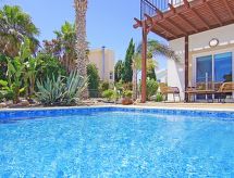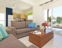 Villa, confortable "basil". Infrastructures de la maison: air-conditionné, lave-linge (à usage privé). Accès et parking: parking réservé. Accès en voiture pendant toute l'année. Voiture recommandée. Position: au centre d'Ayia Thekla, en bordure de la localité d'Ayia Napa, en position tranquille au bord de la mer. Vue de la maison sur le jardin. Alentours de la maison: piscine (à usage privé, longueur 8 m x largeur 4 m). Infrastructure et distances: supermarché 1.9 km, restaurant 1.9 km, plage de sable 600 m.Interior