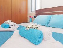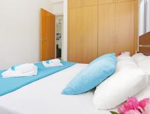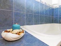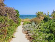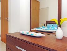 Maison individuelle, 5 pièces pour 6 personnes, 130 m2 sur 2 niveaux. Séjour/salle à manger avec TV régional, TV (satellite) et DVD. Non permis de fumer. Internet (Connexion WIFI). Chambre à coucher avec 1 lit double. Chambre à coucher avec 1 lit double. Chambre à coucher avec 2 lits normaux. Cuisine ouverte avec four à 4 plaques, four micro-ondes, four, table pour les repas, lave-vaisselle, réfrigérateur et congélateur. Salle de bains et douche/WC. Jardinet, meubles de terrasse. Autres fournitures: coffre-fort, sèche-cheveux, fer à repasser, lave-linge.- Caractéristiques de l'hébergement