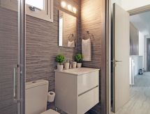 Maison individuelle, 4 pièces pour 6 personnes, 130 m2, moderne aménagement. Séjour/salle à manger avec TV (satellite) et DVD. Non permis de fumer. Internet (Connexion WIFI). Chambre à coucher avec 1 lit double. Chambre à coucher avec 1 lit double. Chambre à coucher avec 2 lits normaux. Cuisine avec four micro-ondes, four, table pour les repas, lave-vaisselle, réfrigérateur et congélateur. Salle de bains, bain/WC, douche et douche/WC. Balcon, jardinet, meubles de terrasse. Autres fournitures: coffre-fort, sèche-cheveux, fer à repasser, lave-linge.- Caractéristiques de l'hébergement