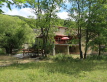 Maison "Au petit ruisseau", jumelée, rénovée en 2019, environnée par les arbres et prés. À 2.3 km du centre de Valgorge, à 25 km du centre de Joyeuse, à 45 km du centre d'Aubenas, à 200 m de la rivière. A usage privé: terrain à l'état naturel 1'100 m2 avec arbres, champ. Sentier en escalier (15 marches) jusqu'à la maison. Place de parking (pour 2 voitures) sur le terrain. Abri voiture. Magasins 2.3 km, magasin d'alimentation 2.3 km, supermarché 25 km. Veuillez noter: animaux dans le voisinage.Interior